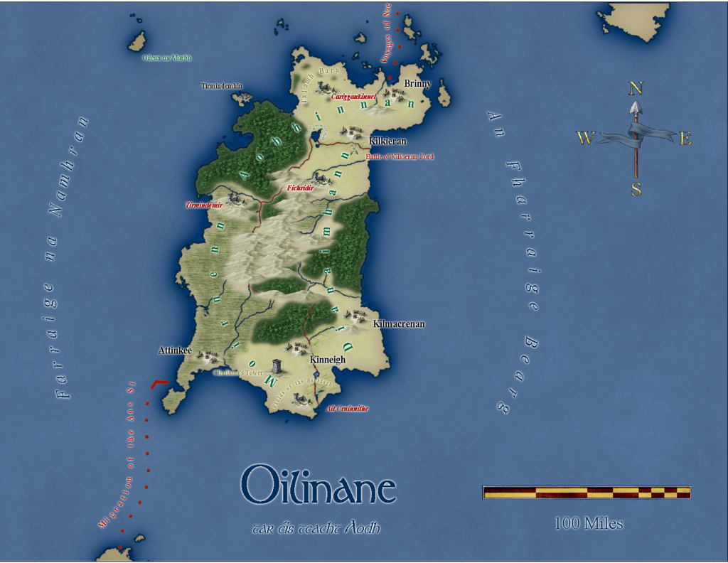 This is the jumping-off point for my campaign world. I’ve developed much of it conceptually, but today I’d like to share a map of the small island of Oilinane, developed with reference to the Connacht region of Ireland around 550 bce. The map is available for free, like everything else, over on my Patreon.